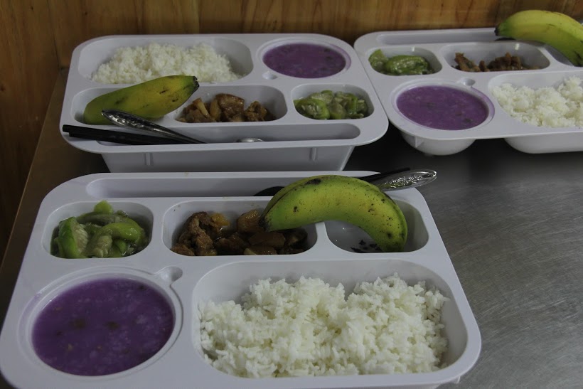 Dù là bữa cơm 2000 đồng nhưng có đầy đủ các món ăn và trái cây tráng miệng.