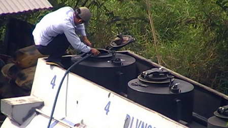 Một sự thật "dã man" được phơi trần: Tại TP.HCM, những xe bồn sau khi "ăn hàng" ở Tổng kho xăng dầu Nhà Bè đã rẽ ngang các "trạm pha chế" bí mật. Tại đây, người ta dùng kéo cắt niêm nhựa trên nắp hầm chứa xăng; bơm chất lỏng vào hầm để bù cho lượng xăng đã rút bên dưới.