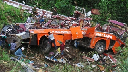 Hiện trường vụ tai nạn xe khách ở Sapa tối 1/9