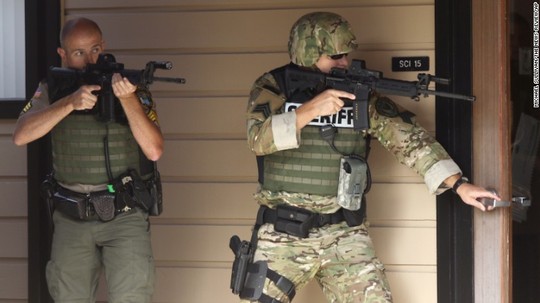 CNN dẫn lời một quan chức thực thi pháp luật cho biết 3 khẩu súng ngắn và một súng trường được tìm thấy tại hiện trường.