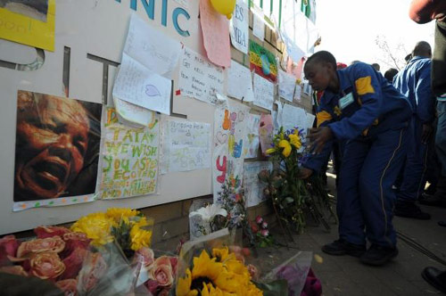 Bên ngoài bệnh viện, người dân tập trung ngày càng đông mang theo hoa và những lời chúc bình phục, đồng thời cùng nhau hát vang những bài thánh ca. Một người dân tên là Rosemarie van Staden cho biết: “Tôi đến đây vì Cha Mandela. Ông đã muốn chúng tôi trở thành một quốc gia cầu vồng và chúng tôi phải tiếp tục sự nghiệp đó.”