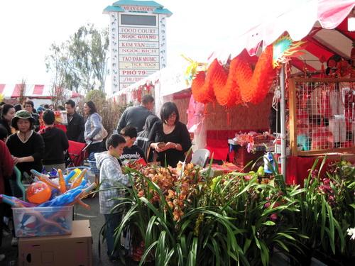 Ba ngày sau, khi về Los Angeles và đến khu Phước Lộc Thọ ở Santa Ana thì không khi đón tết của cộng đồng người Việt tại đây đã quá tưng bừng, chen chân nhau để đi. Trời lạnh se se và nắng chưa đủ để ấm nên hầu hết mọi người đều phải mặc áo khoác. Hoa ngập tràn trong khu hội chợ. Mai, đào, Cúc, Huệ, hồng, lay ơn, phong lan, thượt dược… cành quất. Tất cả như từ quê nhà được đưa sang đây hội ngộ. Người ta nói thời tiết ở California giống hệt như ở Việt Nam, nên người Việt đã tái tạo một không gian Tết rất Việt trên đất khách. Chỗ này một nhóm phóng viên đang thực hiện phóng sự, đằng kia là các bàn bầu cua tôm cá, xóc dĩa đang thu hút sự chú ý thử vận may của nhiều người. Xa hơn một chút, trong khoảng đất trống, một “chàng” tuổi độ 30-35, áo thun trắng dài tay, quần jeans, điện thoại đeo ngang thắt lưng bên phải, tay cùng bên cầm dây pháo chuột màu đỏ thắm đang đốt nổ đì… đoàng…, tạo ra chuỗi âm thanh mơ hồ như những phút giây Giao thừa nghe tiếng pháo xa xưa…