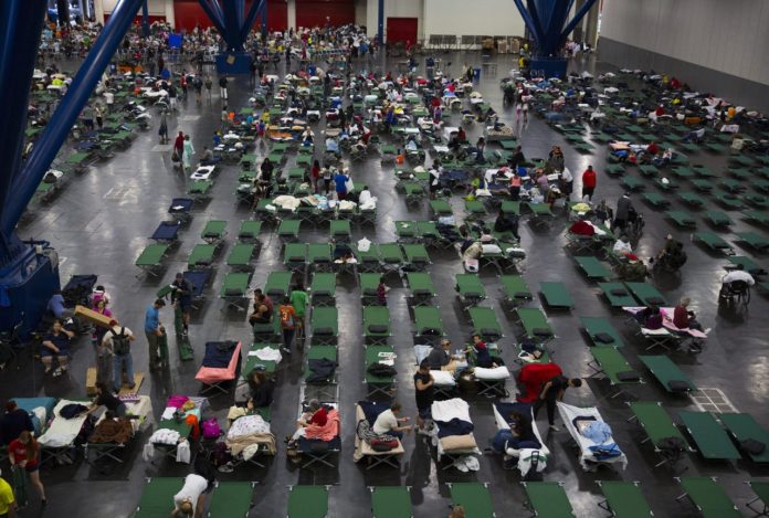 Cơ quan Hồng Thập Tự thiết lập trung tâm tiếp đón người di tản ở George R. Brown Convention Center. Đến trưa ngày Thứ Hai, nơi có thể chứa tới 5,000 người này đã nhận khoảng hơn 2,600 và dự trù sẽ còn hàng ngàn người khác kéo tới.