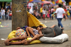 Theo báo cáo của Tổ Chức Homeless International vào năm 2008, Philippines có 32.8 triệu dân sống trong các nhà ổ chuột, chiếm 40% dân số, ước tính có khoảng 1,200.000 trẻ em không nơi nương tựa. Theo Natgeotv.com, tại thủ đô Manila có hàng nghìn người vô gia cư đã biến khu nghĩa địa thành nhà ở.