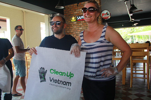 Những bạn trẻ Việt Nam cùng tham gia ngày hội Clean up với người ngoại quốc