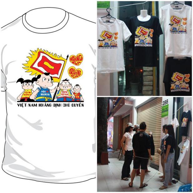 Hồ Lê Nhật Thành, 27 tuổi, chìa cho tôi một chiếc phong bì lì xì in bản đồ Việt Nam kèm theo câu “Hoàng Sa – Trường Sa – Việt Nam”. Tết vừa rồi, Thành đã in khoảng 10.000 chiếc phong bì như vậy để bán và “bán chạy đến không ngờ, khách hàng đặt in thêm 3.000 cái nữa mà không kịp thời gian” - Thành kể. Không chỉ in phong bì, Thành còn in 100 chiếc áo thun với hình ảnh và khẩu hiệu “Việt Nam khẳng định chủ quyền” vừa để kinh doanh, vừa để cổ vũ cho chủ quyền Việt Nam trên các quần đảo. Những ngày này, Thành đang đi từ TPHCM ra Hà Nội bằng đường bộ, vừa kết hợp đi “bán rong” vừa cổ động cho phong trào kinh doanh hàng không xuất xứ từ Trung Quốc.
