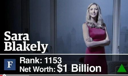 Làm giàu từ chính đôi bàn tay của mình, Sara Blakely năm nay 42 tuổi đã trở thành tỉ phú sau khi thành lập nên hãng đồ lót tạo dáng cho nữ giới Spanx. Giờ đây cô là người phụ nữ đầu tiên tham gia dự án từ thiện của tỉ phú Warren Buffett và Bill Gates.