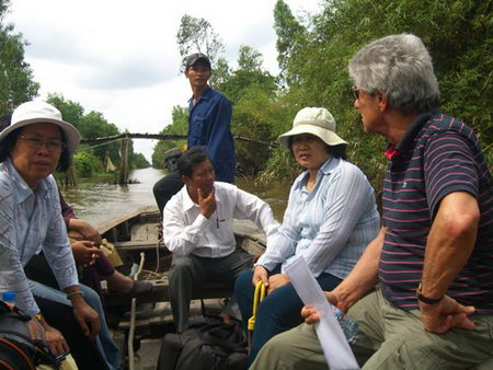 Ông Ruff trên thuyền đến nhà một trẻ bệnh tim ở Tiền Giang - Ảnh: Nhân vật cung cấp