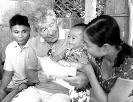 Ông Ruff đến nhà bé Bùi Ngọc Vân Anh ở tỉnh Tiền Giang tìm hiểu trước khi quyết định tài trợ bé này được mổ tim