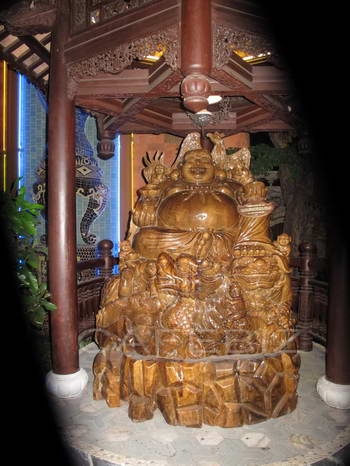 Bức tượng này được làm bằng gỗ Thủy Tùng, một trong những loại gỗ quý nhất thế giới. Bức tượng được nghệ nhân Phùng Văn Tín sưu tập năm 2010.