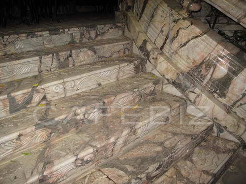 Các bậc thang trong quán cà phê hoàn toàn được làm bằng đá chạm bằng tay do các nghệ nhân tại Non Nước – Ninh Bình chế tác.