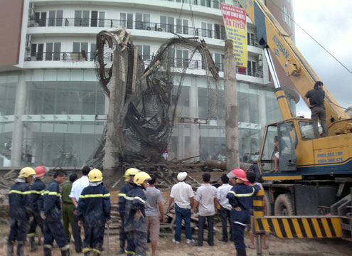 Hiện trường vụ sập khách sạn. Ảnh: Trường Sơn.