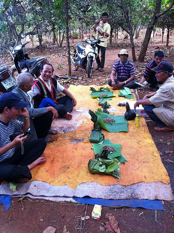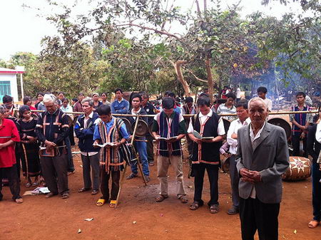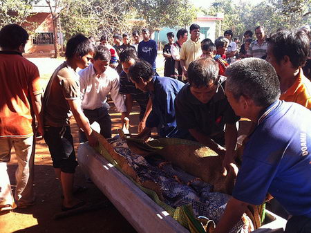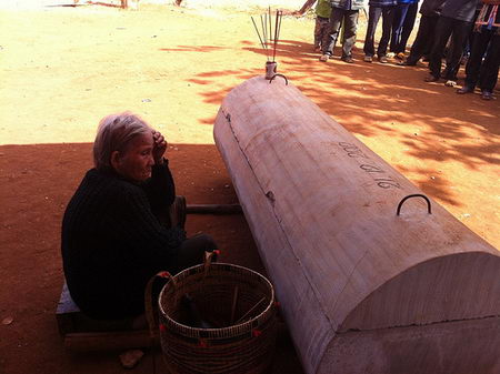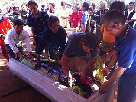 Qua chặng đường dài bụi bay mù mịt chúng tôi đến với đám tang người dân tộc mới qua đời.