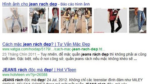 Trên thực tế, chỉ cần gõ những từ khóa như “jean rách đẹp”, “cách phối Jean rách” lên công cụ tìm kiếm, bạn sẽ thấy có cả trăm nghìn kết quả trả về. Điều này cho thấy xu thế này đang khá “hot”. Khi không tìm được sản phẩm ưng ý tại các shop thông thường, các gian hàng trực tuyến sẽ là địa chỉ phù hợp nhất để ‘thoả’ cơn khát jean rách cho giới trẻ.