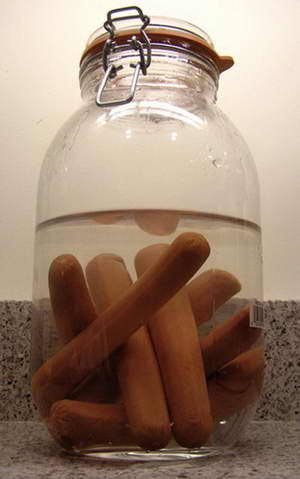 Rượu ngâm xúc xích của dân Mỹ - Ảnh: egullet.org