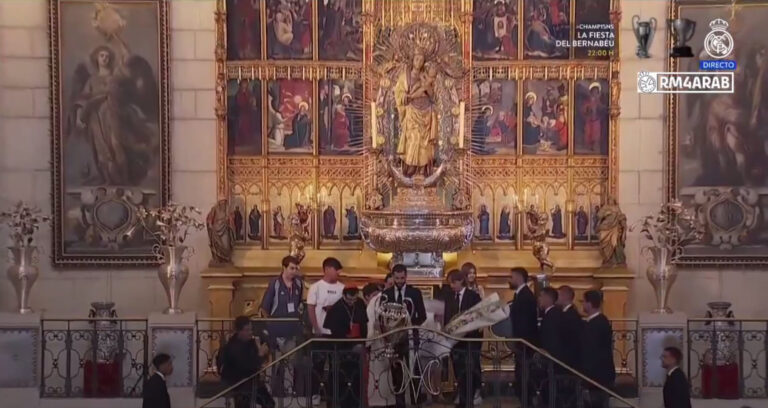 Đó là vào năm 2018, sau khi giành chiến thắng, CLB bóng đá Real Madrid lần đầu tiên đã đến dưới chân Đức Trinh Nữ, Đấng bảo trợ của Madrid để dâng cúp cho Mẹ. Họ cũng làm điều đó vào năm 2022 sau khi đánh bại Liverpool ở trận chung kết.