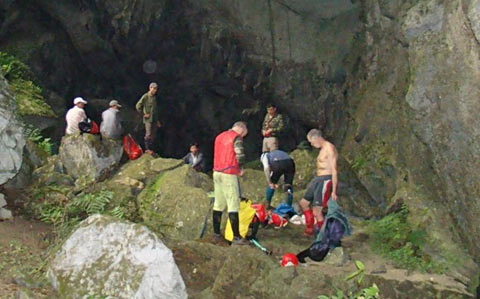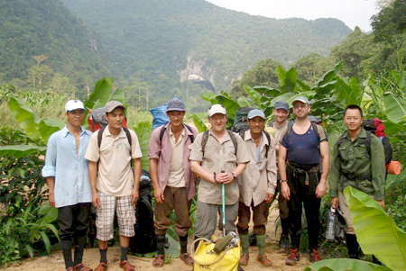 Đoàn thám hiểm hang động và anh Hồ Khanh, người đầu tiên tìm ra hang động Sơn Đoòng (người thứ 2, từ trái sang).