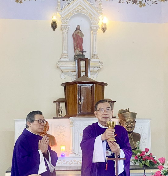 Cha Tổng Đặc trách Phaolô Nguyễn Luận chủ tế thánh lễ, cùng đồng tế có cha cựu Bề trên Phêrô Nguyễn Hữu Giải, ngài chia sẻ lời Chúa, và sự hiện diện của một số anh chị em Cựu Chủng sinh Huế tại Thành phố Huế.