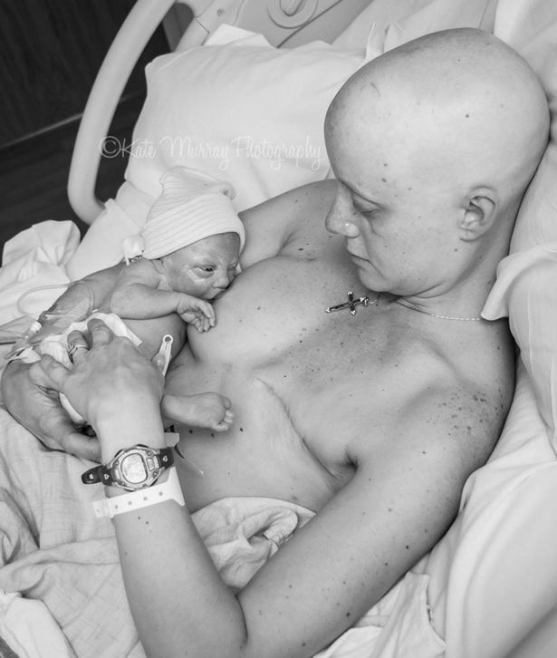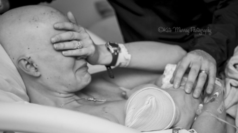 Người mẹ này được chẩn đoán mắc ung thư vú ở giai đoạn 3 khi đi được nửa hành trình thai nghén. Cô phải cắt bỏ một bên vú lúc đứa con còn nằm trong bụng. Cô phải trải qua các đợt truyền hóa chất trước khi chuyển dạ sinh con ở tuần thai thứ 36.