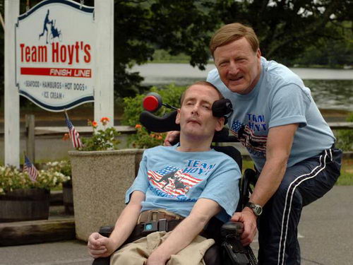 Mặc dù người ta nhìn thấy Dick và Rick Hoyt trên trường đua nhiều lần, nhưng không lần nào khán giả ngừng ngưỡng phục người cha đáng kính vừa chạy vừa đẩy con mình đang ngồi trong xe lăn, gò lưng đạp xe kéo theo một chiếc xe lăn lên dốc xuống đồi, hay vừa bơi vừa kéo đứa con tật nguyền.