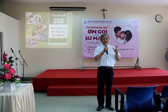 Chiều thứ Bảy ngày 15/11/2014, Chương trình Chuyên đề Giáo Dục đã tổ chức buổi nói chuyện chuyên đề “Ơn gọi và sứ mạng của gia đình”, do Cha Louis Nguyễn Anh Tuấn, Trưởng ban Mục vụ Gia Đình TGP Sài Gòn chia sẻ tại Trung tâm Mục vụ Giáo phận với sự hiện diện của hơn 100 tham dự viên.