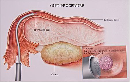 Trứng được lấy ra từ người nữ bằng các kỹ thuật như trong thụ tinh trong ống nghiệm (được mô tả bên dưới), sau đó một hoặc nhiều trứng được đặt vào một ống thông có chứa tinh trùng đã được lấy trước và xử lý để tăng khả năng thụ tinh. Sau đó, ống thông chứa trứng và tinh trùng được đưa vào vòi fallope của người nữ, sau đó tinh trùng và trứng được thổi ra khỏi ống và sự thụ tinh diễn ra trong cơ thể người nữ.