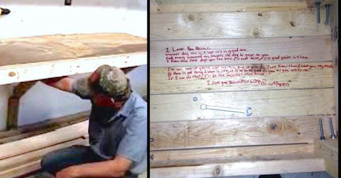 Một người đàn ông, một thợ mộc lành nghê chẳng may đã qua đời sớm ở tuổi 51 vì bị vỡ động mạnh. Lúc còn sống ông từng đóng tặng vợ mình một chiếc bàn làm việc.