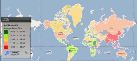 Bản đồ khảo sát về kích thước “bộ phận nhạy cảm” của đàn ông toàn thế giới.