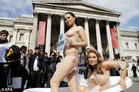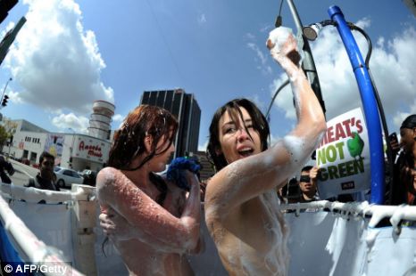 Những người mẫu ở Los Angeles và Luân Đôn đã tắm ngay trên đường phố để vận động cho chiến dịch ăn chay của Hiệp hội bảo vệ động vật Peta.