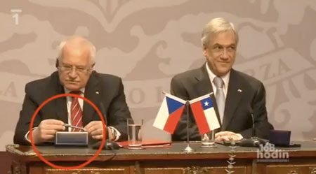 Đoạn clip “cáo buộc” Tổng thống Séc Vaclav Klaus “biển thủ” một chiếc bút trong cuộc họp báo cùng với Tổng thống Chile đã gây sốt trên mạng chia sẻ hình ảnh YouTube trong những ngày qua.