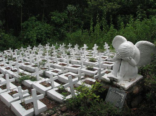 Ngày 23.8.2010, tôi được cha Phêrô Trần Văn Quí, giám đốc Caritas Tổng giáo phận Huế, trưởng ban Bác ái Xã hội hướng dẫn đi thăm nghĩa trang. Nhìn những nấm mồ được chôn cất chu đáo, thứ tự từng hàng lớp bao quanh một đài Đức Mẹ với những tượng thiên thần rất xinh xắn, lòng không khỏi xót xa cho số phận những sinh linh bé bỏng không được chấp nhận. Theo thống kê thì toàn nghĩa trang có trên 42 ngàn ngôi mộ, bình quân mỗi tuần có trên 50 thai nhi bị phá bỏ. Một tình trạng đáng báo động cho xã hội Việt Nam hiện nay. Ban Bác ái Xã hội đã liên hệ với những trung tâm sản khoa, mỗi lần có vụ phá thai thì họ báo để đến thu nhặt về chôn.