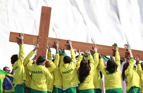 11g32. ĐTC công bố Ngày GTTG lần thứ XXVII sẽ diễn ra tại Rio de Janeiro (Brazil). Tiếng hò reo vang dậy. Thánh giá Ngày GTTG và ảnh Đức Mẹ Salus Populi của Roma được giới trẻ Tây Ban Nha chuyển giao cho Brazil. Bài ca Christus vincit vang lên hùng tráng.