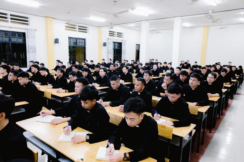 Các bạn chủng sinh thân mến, Đức thánh cha đang nói với các bạn trong lời kêu gọi tha thiết ấy. Giáo hội cần các linh mục là những nhà thừa sai bác ái, được sai vào trong thế giới, với đầy tràn niềm vui có sức thúc đẩy mình nói “vâng” với Đức Giêsu Kitô mỗi ngày, ngay cả những khi mà điều đó có nghĩa là nói “không” đối với những sở thích riêng, những khao khát riêng, những dự tính riêng của chúng ta. Thật vậy, có thể nói rằng tất cả việc cầu nguyện, việc đào tạo, học tập và rèn luyện mà các bạn trải qua ở đây trong chủng viện này có mục tiêu là: đào tạo những chàng trai có khả năng chuyển hóa cách chân thực và nhất quán niềm vui mà họ kinh nghiệm trong việc gặp gỡ Chúa Giêsu thành những thực hành cụ thể của bác ái, khi họ thực thi sứ vụ bí tích của mình.