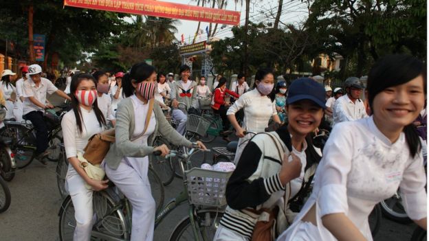 Học sinh tan trường ở Hội An. TIM CLAYTON - CORBIS/GETTY IMAGES