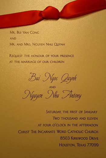 Nhận được thiệp hồng của anh chị Nguyễn Như Quỳnh PX61 báo tin lễ thành hôn của Trưởng nam: