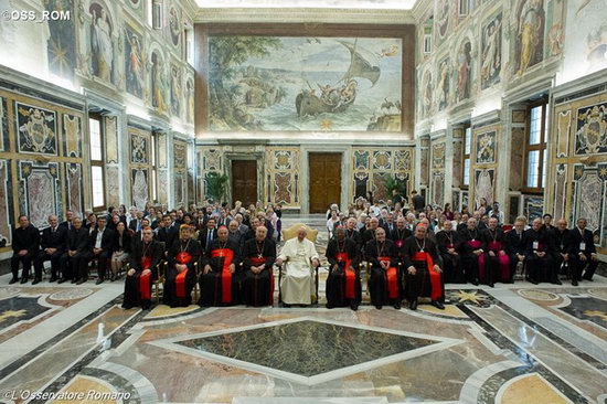 Các Thành Viên và các Cố Vấn thân mến, tôi xin cám ơn anh chị em vì công việc anh chị em thực hiện để phục vụ Cơ Quan này, và tôi khuyến khích anh chị em mở lòng mình ra, sẵn sàng vâng theo và khiêm nhường trước các điều mới mẻ của Thiên Chúa, những điều làm chúng ta ngạc nhiên và vượt quá khả năng của chúng ta nhưng không bao giờ lừa dối chúng ta, như Đức Mẹ đã làm; ngài là Mẹ và là Cô Giáo của chúng ta trong đức tin. Từ tận đáy lòng, tôi ban cho anh chị em và các người thân yêu của anh chị em phúc lành của tôi. Và xin anh chị em đừng quên cầu nguyện cho tôi.