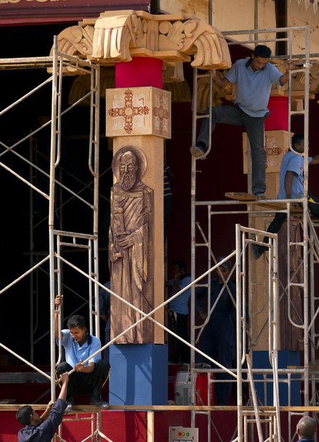 Đức Thánh Cha đã được chào đón trong một buổi lễ đầy màu sắc, có cả một đàn voi bước theo những tiếng trống dập dồn, bên cạnh các vũ công truyền thống của Tích Lan và Tamil, và dàn hợp xướng của trẻ em hát một bài ca chào đón ngài bằng tiếng Tích Lan, tiếng Tamil, tiếng Anh - và cả tiếng Ý nữa.