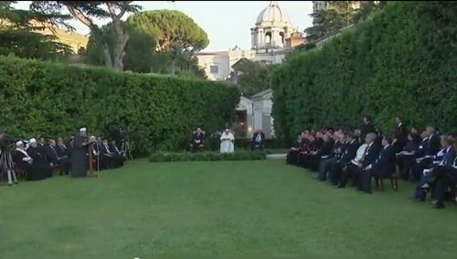 Đức giáo hoàng Phanxicô đã khẳng định như trên khi ngỏ lời với các vị khách vào tối Chúa nhật 08-06, ngày gặp gỡ-cầu nguyện cho hoà bình.