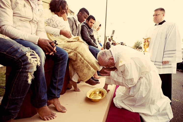 Năm 2013, Đức Phanxicô rửa chân cho các người trẻ bị tù ở một nhà tù ngoại ô thành phố Rôma. Năm 2014 và 2015 ngài rửa chân cho người lớn tuổi và người khuyết tật. Năm nay, 2016, ngài rửa chân cho 12 người tị nạn trẻ ở Trung tâm Castelnuovo di Porto, một thành phố nhỏ có 9 000 người dân cách Bắc Rôma 30 cây số. Trung tâm này tiếp nhận khoảng 900 người di dân Phi Châu, đa số là đàn ông dưới 30 tuổi, họ đến Ý bất hợp pháp và chờ xin quy chế tị nạn.