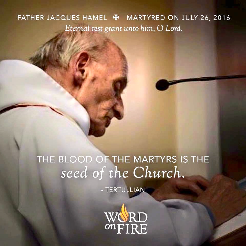 Cha Jacques Hamel, 86 tuổi, đã bị hai kẻ khủng bố Hồi giáo sát hại khi ngài đang cử hành Thánh Lễ tại nhà thờ Saint-Etienne-du-Rouvray ở ngoại ô Rouen, vào ngày 26 tháng Bảy 2016.