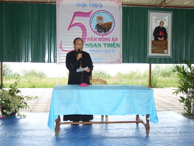 Đại diện cho Đức Tổng Giám Mục giáo phận, tôi xin thân ái chào đón quí Cha, quí anh em CCS Huế và gia đình của anh em, hôm nay trở về với đất Mẹ Giáo Phận để tham dự những ngày Hội Ngộ hồng phúc nầy, nhân dịp kỷ niệm 50 năm thành lập chủng viên Hoan Thiện.