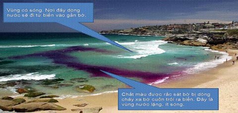 Hình ảnh trên cho thấy một dòng chảy xa bờ. Trong thí nghiệm này, người ta rắc chất màu sát bờ biển, chất màu bị kéo ra xa bờ, chứng tỏ nơi đó dòng nước đi ngược từ bờ ra biển.