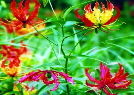 3. Ngoắt nghẻo: Tên khoa học là Gloriosa superba. Củ và hạt cây có chất kịch độc Colchicine và một số alkaloid khác mà nếu ăn vào sẽ gây tê lưỡi, làm cho cơ thể mất cảm giác, nặng thì hôn mê và nếu không xử lý kịp thời sẽ dẫn đến tử vong.