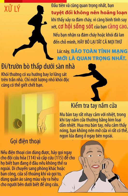 | Kỹ năng thoát hiểm trong hỏa hoạn Thực tế cho thấy, các vụ cháy gây thiệt hại nghiêm trọng về người phần lớn do người gặp nạn chưa có kỹ năng thoát nạn khi gặp hỏa hoạn. Sau đây chúng tôi xin cung cấp tới bạn đọc những kỹ năng thoát hiểm cần thiết khi gặp hỏa hoạn. Trước hết, khi phát hiện ra đám cháy, ngay lập tức bạn phải giữ bình tĩnh, không hoảng loạn, hô to báo động cháy, tập trung mọi người trong gia đình, dập tắt đám cháy nếu là đám cháy nhỏ. Nếu là đám cháy to, không thể dập tắt, các bạn hãy thật bình tĩnh suy nghĩ để tìm một lối thoát an toàn, trước khi thoát ra. Bỏ lại tất cả mọi tài sản bởi vì bạn chỉ còn thời gian vài phút thậm chí vài giây để thoát hiểm hoặc chết trong đám cháy. Khi cửa chính bị lửa bao vây, hãy di chuyển lên tầng trên và thoát ra ngoài bằng lan can hoặc bằng cách đi qua các mái nhà của nhà bên cạnh. Tránh ngạt khí Trong khi chiến đấu với đám cháy bạn phải ngay lập tức tránh ngạt khói, làm giảm các tổn thương vì ngạt khói nếu không bạn sẽ bị chết vì ngạt khí trước khi được cứu thoát. Bởi vì khói có chất độc và nhiệt độ cao, dễ gây bỏng đường hô hấp, loại bỏng khó chữa nhất. Nhưng khói có đặc tính bốc lên cao, vì vậy, khi phát hiện cháy, ngay lập tức lấy khăn, vải ướt che mũi và miệng, hít thở nhẹ, cúi sát người dưới sàn nhà và di chuyển ra nơi an toàn. Nếu quần áo bị bắt lửa hãy nằm xuống và lăn cho đến khi nào lửa tắt. Nếu bị mắc kẹt trong phòng đang cháy Hãy bình tĩnh, xác định hướng thoát ra ngoài an toàn nhất nếu có thể. Dùng chăn, tấm vải to nhúng vào nước và trùm lên toàn bộ người hoặc nhúng toàn bộ người vào nước và nhanh chóng thoát ra ngoài theo hướng đã được xác định. Chú ý trong khu vực xảy ra cháy, muốn mở cửa phải xác định phía bên kia cửa có cháy hay không bằng cách kiểm tra các tay nắm xem có nóng hay không, nếu muốn mở cửa thì đứng bên hông cửa, không đứng đối diện cửa vì khi mở cửa nếu bên kia có cháy, khói lửa sẽ ùa ngay vào lập tức, gây bỏng cho bạn. Nếu không thể thoát khỏi vòng lửa, hãy đóng kín cửa dùng vải thấm nước, băng dính chèn kín cửa để ngăn khói vào bên trong. Dùng nước tưới lên cửa làm tăng thời gian chịu lửa. Di chuyển nhanh chóng đến ban công, cửa sổ lấy vải, quần áo làm cờ hiệu và hô to kêu cứu. Nếu khói vẫn vào bên trong phòng thì đồng thời phải dùng vải thấm ướt bịt mũi và miệng, tranh thủ tìm các dụng cụ thoát hiểm, các loại dây có thể sử dụng để thoát ra ngoài. Tuyệt đối không nhảy, biện pháp nhảy chỉ áp dụng khi không còn cách ứng cứu nào khác và đảm bảo phía dưới phải có nệm hơi. Nếu ngoài cửa phía ban công có hàn lưới sắt, cố gắng dùng vật cứng làm đòn bẩy, cậy lưới sắt để thoát ra, hoặc kêu gọi người bên ngoài phá lưới sắt, cứu người. Lưu ý Không dùng thang máy để thoát hiểm. Không dùng nước để chữa cháy khi nguyên nhân gây cháy là chập điện. Không nên chạy vào nhà vệ sinh vì nơi đây được xây kín, ít không khí không có lối thoát, lại là nơi khuất, khó phát hiện nên lực lượng chuyên nghiệp khó ứng cứu. Không hoảng hốt, dẫm đạp lên nhau để thoát hiểm gây hậu quả nghiêm trọng. Nếu đám cháy còn nhỏ, có thể trong một cơn nín thở chạy được ra ngoài thì nín thở chạy ra. Tuyệt đối không được hít vào trong lúc chạy qua đám cháy, vì sẽ gây bỏng đường hô hấp, dễ gây ra tử vong. Hãy gọi 114 Đối với mỗi gia đình, tốt hơn hết, ngoài các biện pháp phòng cháy, cần có kế hoạch ứng phó với hỏa hoạn, đặc biệt với trẻ nhỏ. Cần đề ra các lối thoát hiểm, cách tập trung các thành viên trong gia đình khi xảy ra hỏa hoạn, tập dượt cách báo cháy, dùng khăn ướt chống ngạt khí, dự phòng thang cuốn, các dụng cụ thoát hiểm… Đặc biệt, nếu có hàn lưới sắt chống trộm, cần để một cửa thoát hiểm với chìa khóa để chỗ dễ thấy và mọi người trong nhà đều biết. L.N (Tài liệu Sở Cảnh sát PCCC TP HCM) |