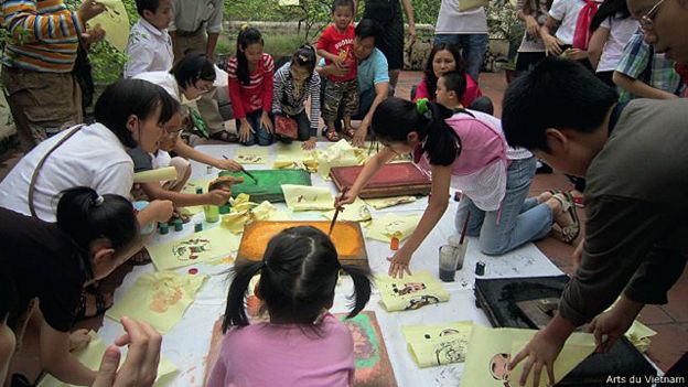 Hoạt động thiếu nhi học làm tranh Đông Hồ, ảnh của Nguyễn Thị Thu Hương,