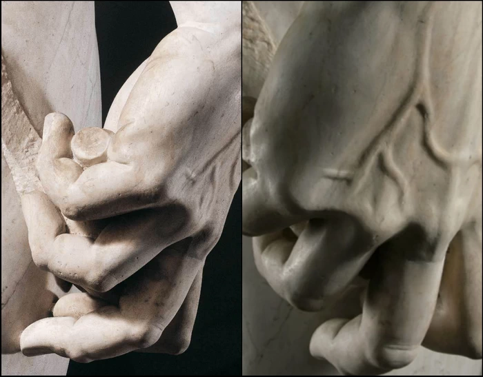 Chi tiết các đường gân trên bàn tay David được tạc tỉ mỉ. Nguồn ảnh: Pinterest & NBC News