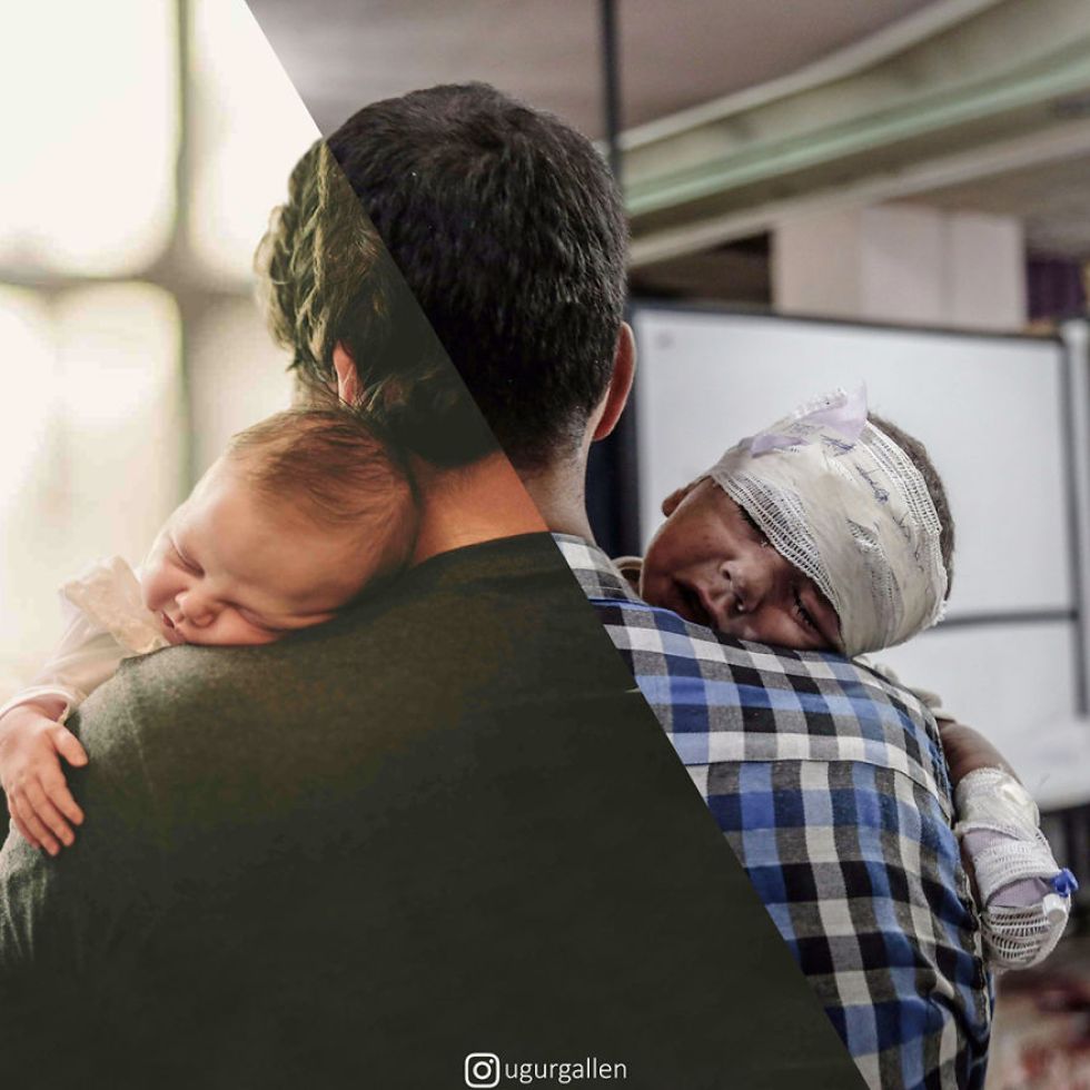 Uğur Gallenkuş là một nghệ sĩ sống tại Istanbul, Thổ Nhĩ Kỳ. Những tác phẩm ghép ảnh kỹ thuật số của ông đề cập đến khoảng cách ngày càng lớn trên thế giới giữa những người có đặc quyền và những người bị áp bức. Bằng cách kết hợp các hình ảnh báo chí với ảnh tư liệu có bố cục tương tự, ông đặt cạnh nhau hai thế giới đối lập: sự an toàn, ổn định, tiện nghi và phát triển mà tầng lớp trung lưu và thượng lưu phương Tây trải nghiệm, và sự bạo lực, sợ hãi, chấn thương và khó khăn mà các nạn nhân của nghèo đói, chiến tranh và di cư phải chịu đựng. Vì sống ở Trung Đông, Gallenkuş đặc biệt tập trung vào khu vực địa lý này.