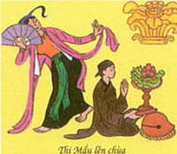 “Ăn với em một miếng trầu Rồi em cởi yếm bắc cầu Tiểu sang” Thì ra ả Mầu cả gan Lên chùa lại dám mời trầu sư ông Thị Mầu vừa thủa đương xuân Yếm hồng phơi phới buông lời bướm ong Trầu cay, tết với vôi nồng Em làm nghiêng ngã cửa thiền Tây Phương Lẳng lơ, lồ lộ nõn nường Thập phương ngây ngất, tỏ tường sân si Mầu ơi, tốc váy làm chi Hay là tại gió tì tì thân em Nhân gian ưa thích nói dèm Vì em xinh đẹp hoa ghen, nguyệt nhường
