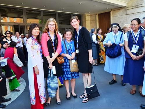Maggie Jensen (mặc áo hồng) cùng mẹ và em gái từ Fort Worth, Texas, đến Roma tham dự