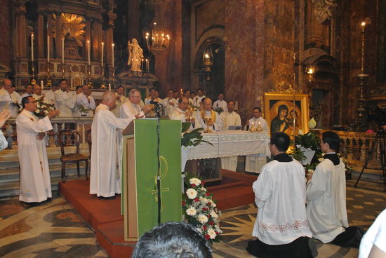 Thánh lễ do Đức Cha Giuse Võ Đức Minh giám mục giáo phận Nha Trang chủ tế. Cùng đồng tế có Đức TGM Têphanô Nguyễn Như Thể, cha Tổng đại diện giáo phận Sàigòn, và khoảng hơn 30 linh mục, đa số là người Việt Nam. Đức HY Peter Turkson, chủ tịch Hội đồng Tòa Thánh về Công lý và Hòa bình, Đức HY Bernard Law có tham dự thánh lễ nhưng không đồng tế.